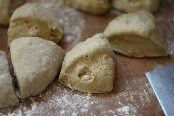 Turn your dough out onto a lightly floured work surface. Using a bench scraper, divide your dough into 8 equal portions, and roll them into balls. Set to one side of your work surface.